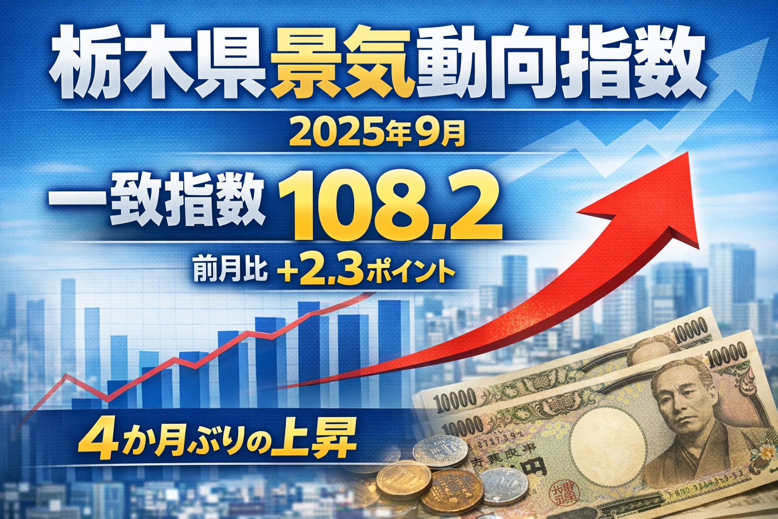 2025年12月2日、栃木県は「令和7(2025)年9月分の景気動向指数(CI)」を発表しました。県内の主要な経済活動を示す「一致指数」は前月比で上昇しました。